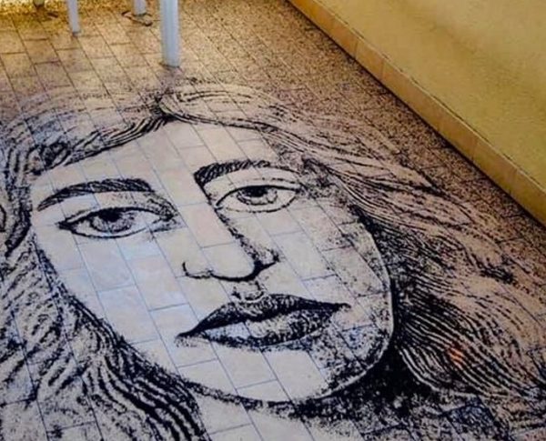 Infine c’è chi per creare quadri di sabbia non ha bisogno di attrezzi ma solo di … un dito. Sono i tanti abitanti dell’area etnea che ormai realizzano disegni stupendi direttamente sulle terrazze di casa. Tra i tanti che poi hanno messo i propri capolavori su Facebook vi segnaliamo, perchè meritano, i disegni di Delia Zappalà, Daniela Marino, Giusy Trovato e in particolare Angelika Antonella Finocchio (il ritratto che vedete in foto qui in alto).