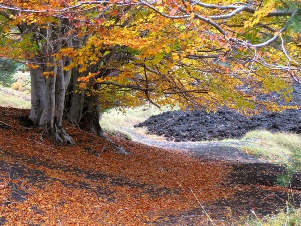 In autunno i castagni, i lecci e le betulle del vulcano creano favolosi contrasti di colore. Quando le foglie ingialliscono l’Etna si copre di un manto dorato che comprende sfumature di arancio, marrone chiaro, rosso cupo, giallo in una festa di sensazioni visive che attira molti curiosi tra ottobre e novembre.